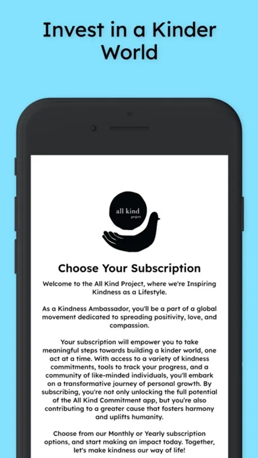 * If you decide to subscribe, your subscription directly contributes to real-world change - we'll plant a tree for every new subscription, fostering a healthier planet. Plus, your subscription supports a range of impactful kindness projects that extend beyond our platform and into communities around the world.