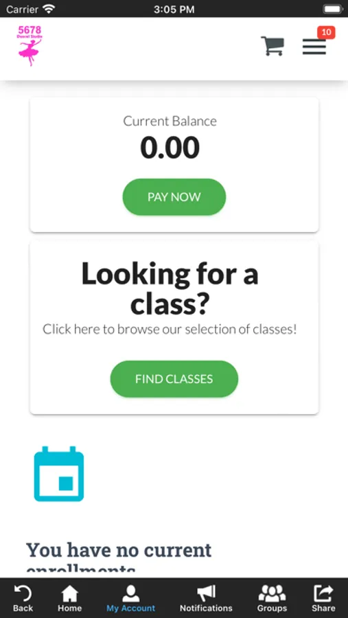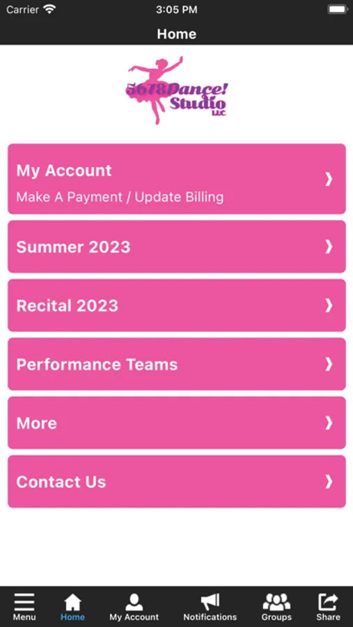The 5678 Dance! Studio app allows you to manage your account with ease, register for classes, and view special announcements.
