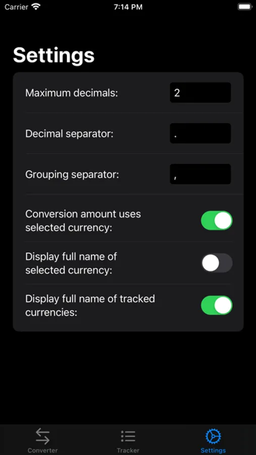 - Currency format modifications, with options to instead convert every tracked currency to the one you have selected as the main one.
