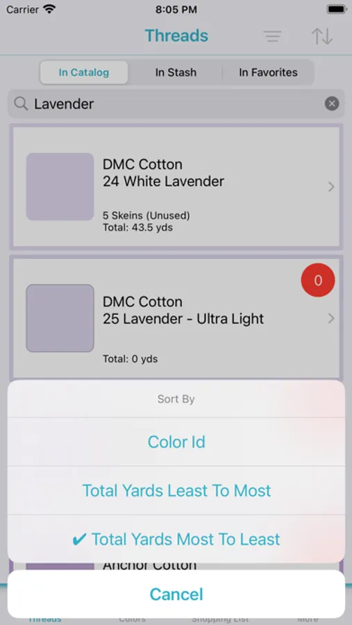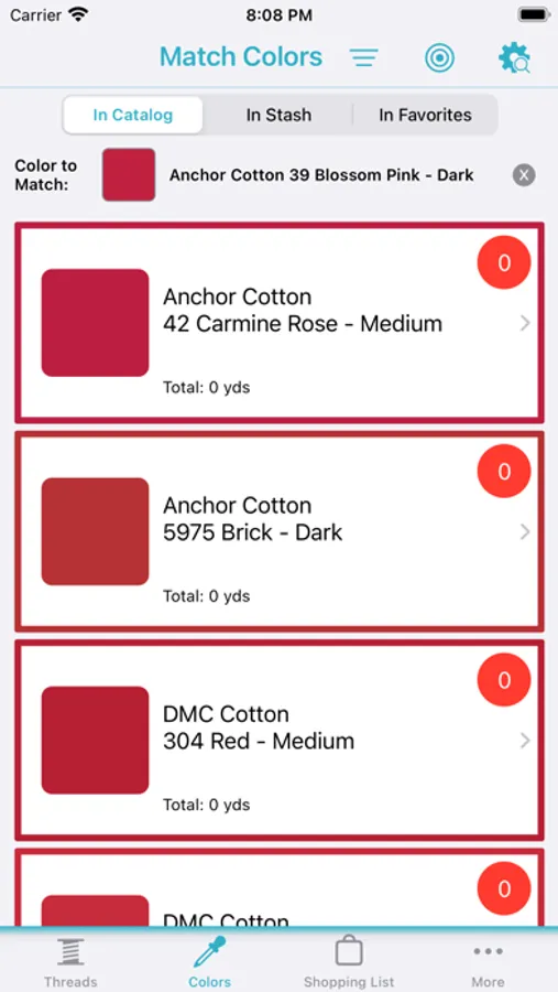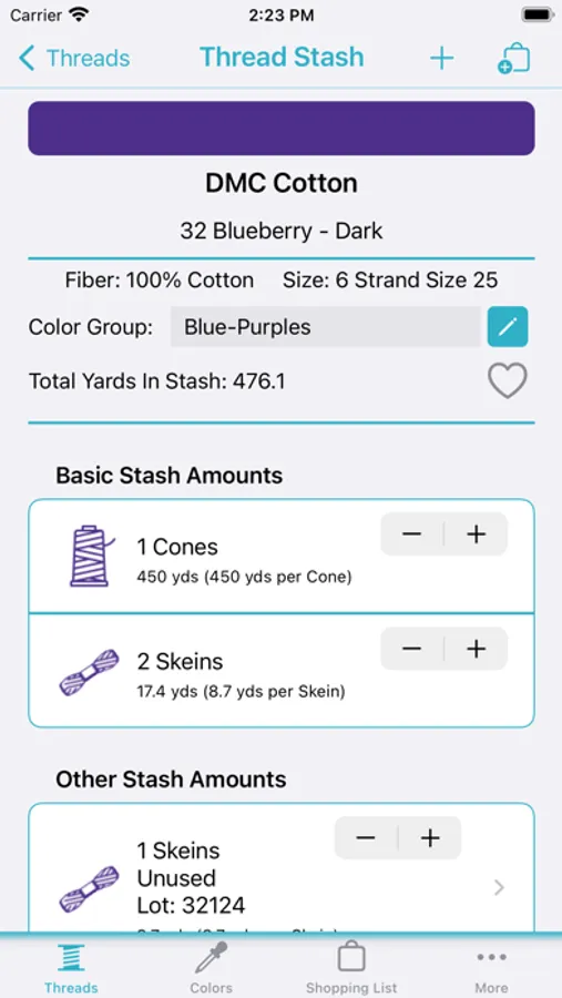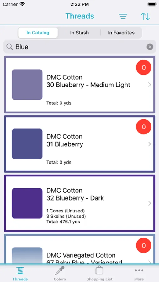 Threadalog is an embroidery thread catalog and organizer. You can keep track of your threads needed for cross stitching and other types of embroidery, and add them to your shopping list.