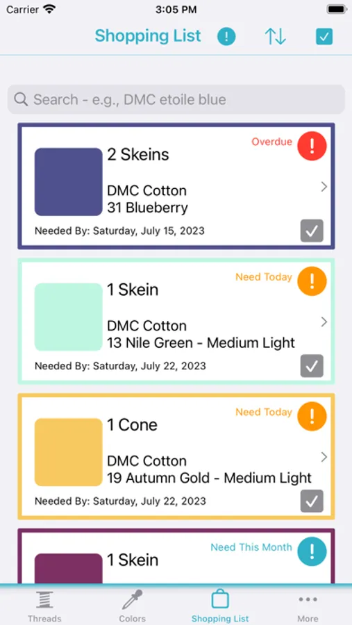 - Keep track of your thread stash of DMC and Anchor solid cotton floss colors