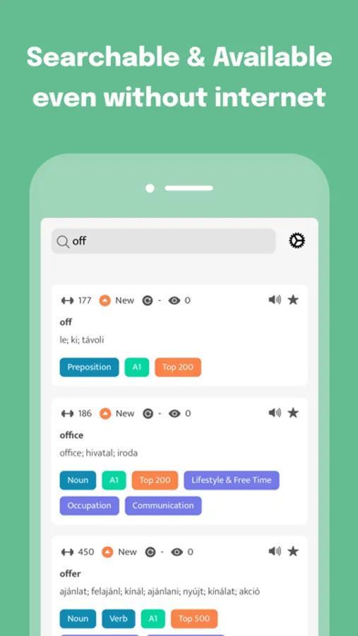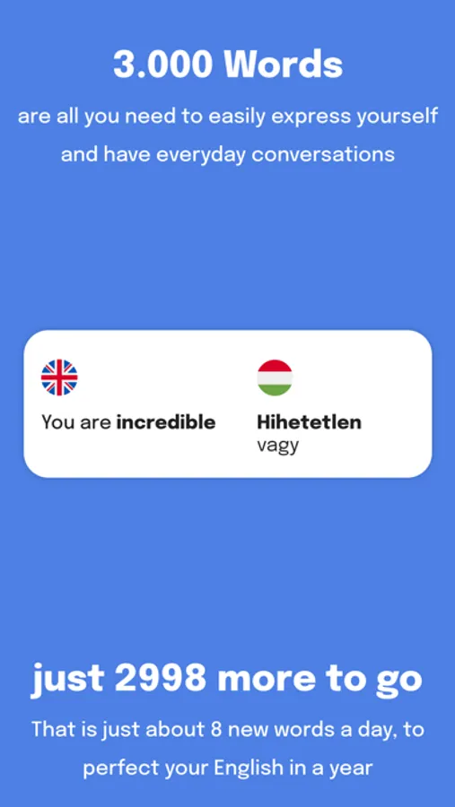 3000 words are all you need to easily express yourself and have everyday conversations in a language. This app has all the most common Hungarian ones, always available on your phone, even while offline.