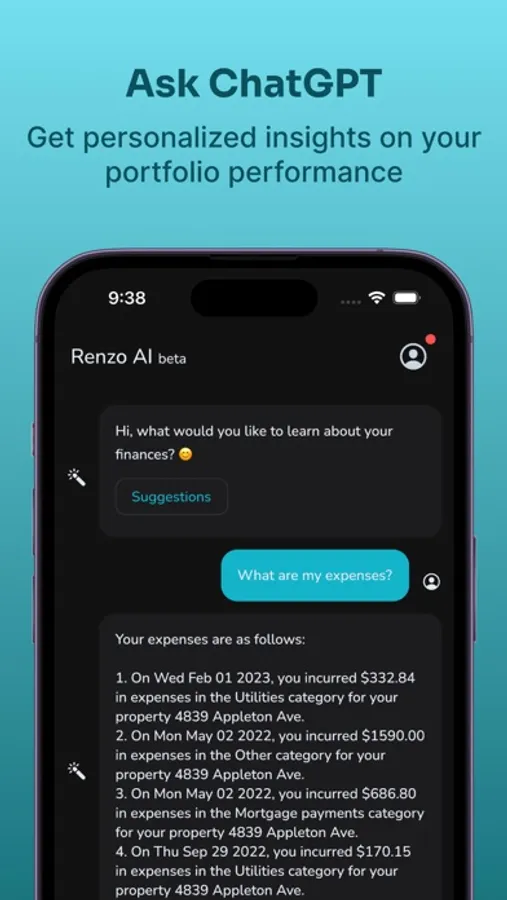 + Our ChatGPT feature allows you to ask questions about your portfolio finances in natural language, so you can make informed investment decisions and know the performance of your properties.