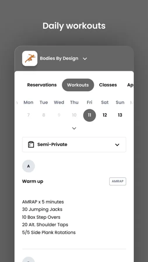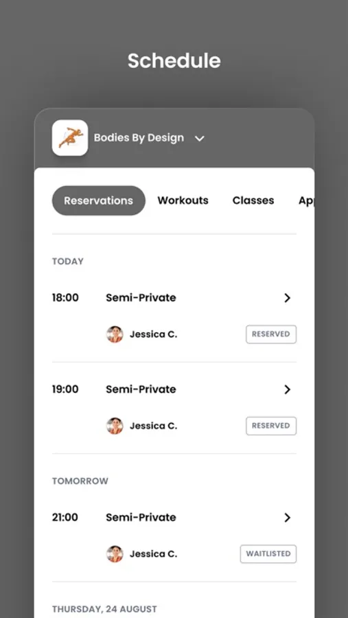 For members of Bodies By Design to reserve their place in a class, sign up for gym events, and general account management like updating headshots and credit card on file.