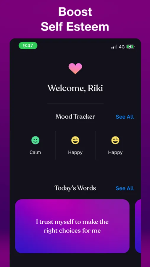 Progress Tracking: Track your self-esteem journey with interactive progress charts, allowing you to celebrate your growth and reflect on your achievements.
