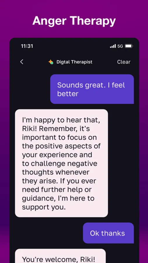 Anger Management Therapy features a compassionate mental health chatbot trained in evidence-based practices, ready to engage in meaningful conversations to help you understand and regulate your anger. The chatbot acts as your trusted ally, providing personalized strategies and coping mechanisms derived from cognitive-behavioral therapy techniques. With its empathetic and understanding nature, the chatbot creates a safe space for you to explore the root causes of your anger and develop effective techniques for anger management.