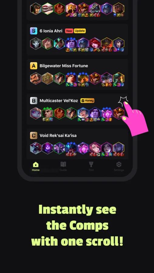 - Reliable comps with OP Tier categorization and instant access to global and regional tier lists.