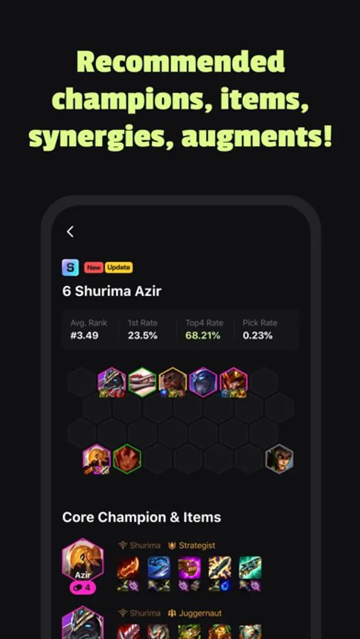 - Explore comp recommendations with Team Build, Champions, Items, Synergies, and Augments.