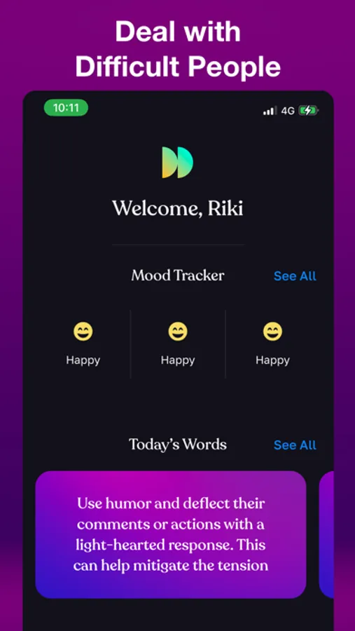 MoveOn features a dynamic chatbot ready to inspire and guide you on your journey to better relationships. Drawing from cognitive-behavioral therapy techniques, the chatbot provides personalized strategies and support to help you effectively deal with difficult people and enhance your relationship skills.
