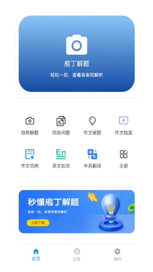 庖丁解题App是一款专为中小学生打造的学习工具,旨在帮助学生们更加轻松地掌握数学知识,提高学习效率,同时提升他们的写作能力。应对各种数学难题和写作任务,庖丁解题App都能帮到您。