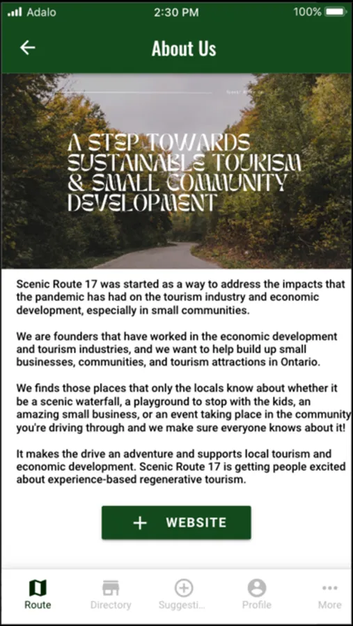 Scenic Route App Allows you to see points of interest and events near you, along with a searchable directory of points of interest, small businesses and small community offerings throughout Ontario. You can add reviews of different points, along with submit tips like the must try menu items, the most scenic photo worthy location on a hiking trail, the best parking spots and much more!