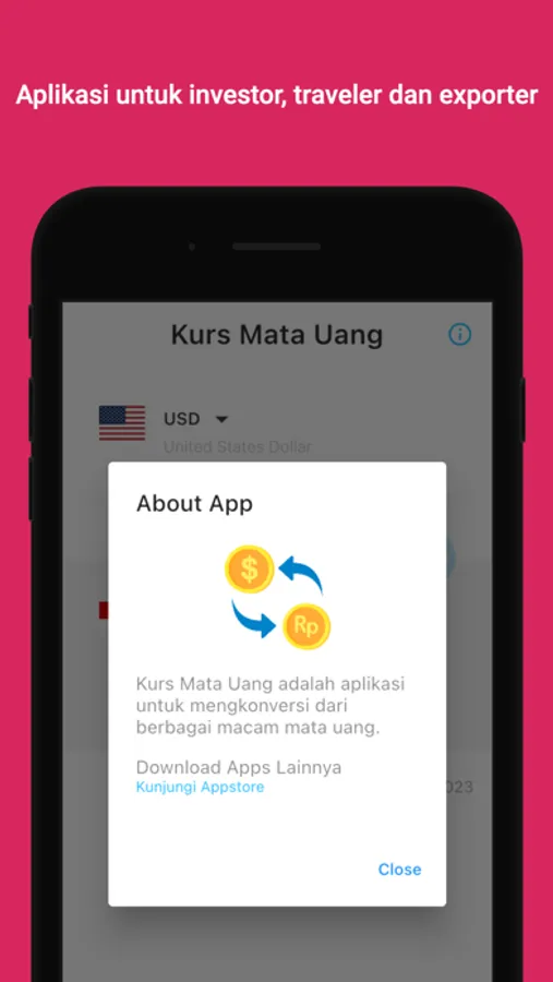 Aplikasi ini menyediakan data kurs terbaru dari berbagai negara sehingga pengguna dapat memperoleh informasi yang akurat dan terkini.