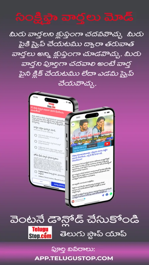 Download All In one Telugu News App TeluguStop.com, TeluguStop App is your number one source for all Telugu Happenings around the world. We're dedicated to giving you Telugu Breaking News from Telangana and Andhra States, Movie, Political, Technology, National, International, NRI News, Technical, Life Style & Health Tips, Cinema Updates, Movie Reviews, Celebrity Updates and Much More.