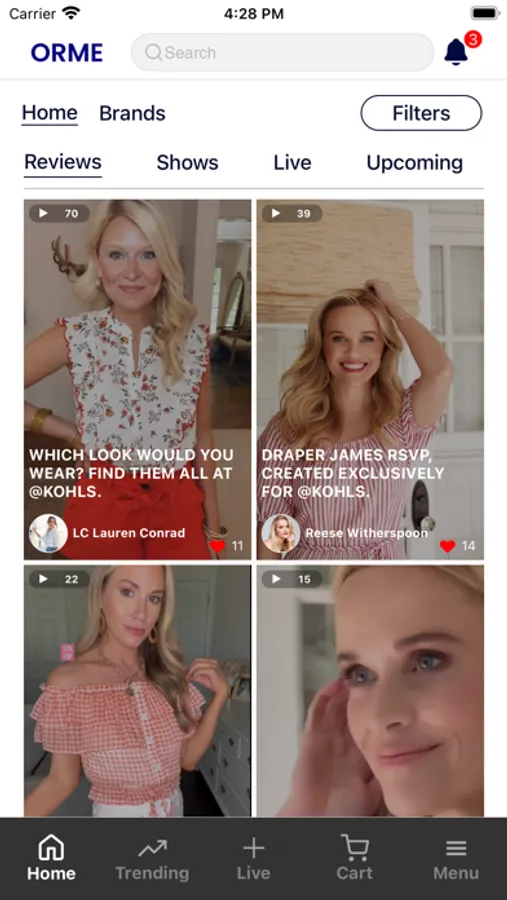 ORME is a video shopping app connecting customers with influencers and brands. Shoppers get elevated shopping experience by watching live, recorded and short videos. The app allows purchases via a simple 3-click checkout. ORME also turns every shopper into an Influencer. Shoppers can share links with friends and family and earn commission.