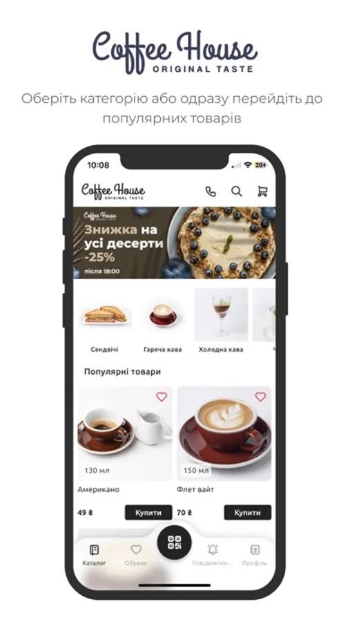 Додаток Coffe House дозволяє вам переглядати каталог закладу, економити дорогоцінний час оформлюючи онлайн замовлення з собою, стежити за акціями та новинами, відправляти відгуки про роботу закладу, а гнучка система лояльності з можливістю накопичувати бонуси та отримувати знижки стане в нагоді тим хто полюбляє заощаджувати
