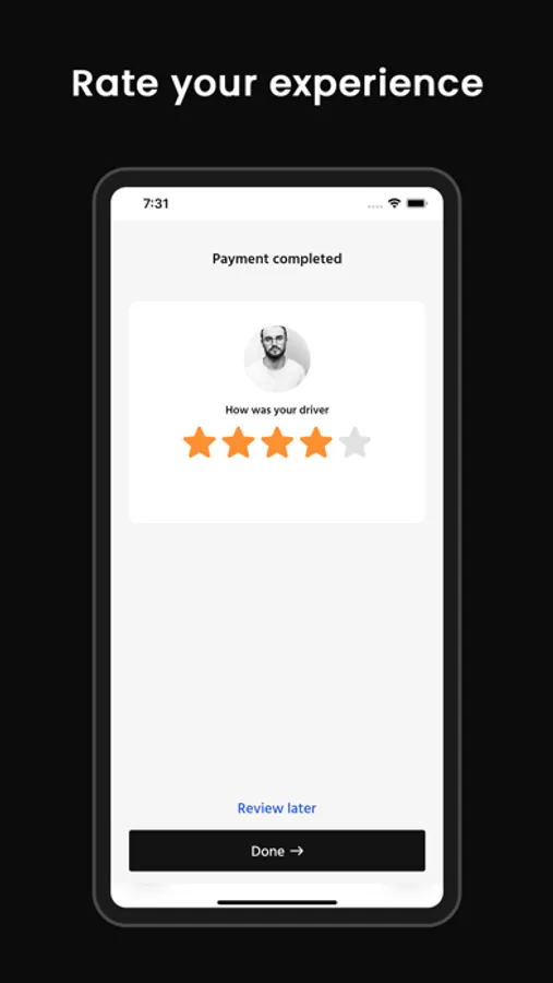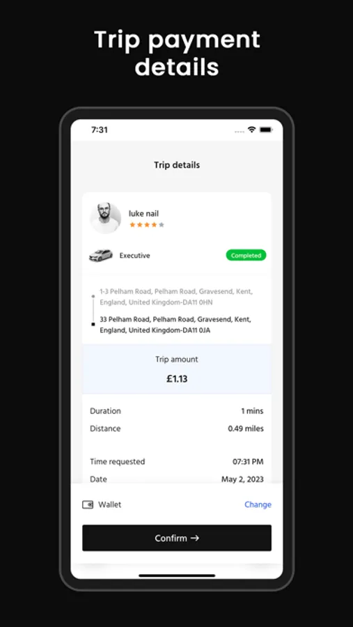 • See the price of your ride before you order. You can pay inside the app (Credit/Debit/Apple Pay).