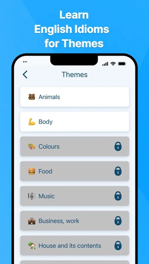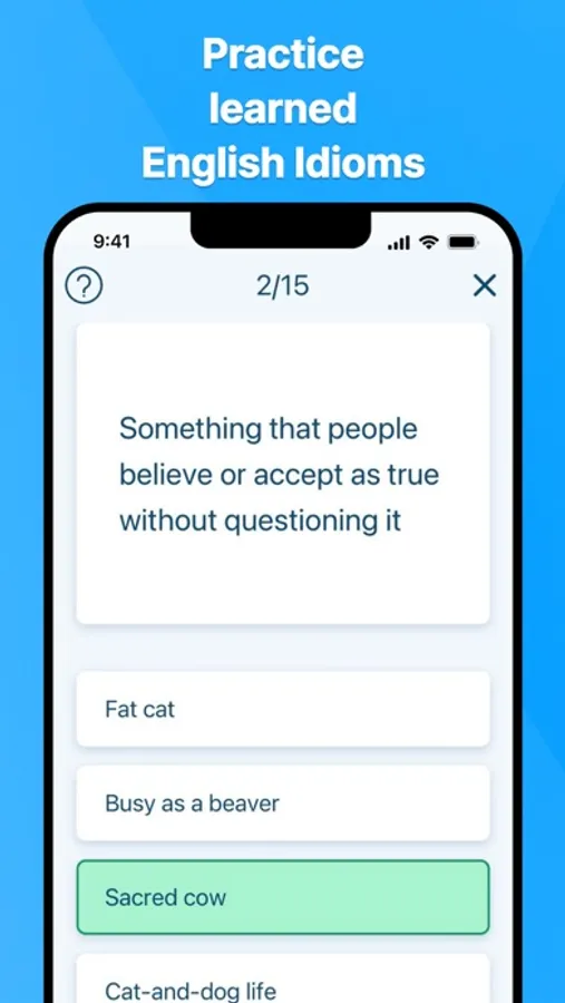 Knowledge of idioms expands vocabulary and makes speech more diverse and lively. Learn new English idioms and phrases with this app and speak English fluently without thinking!