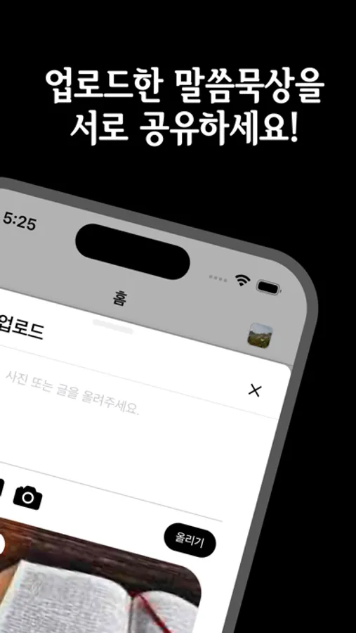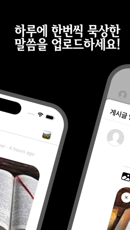 1.1 매일성경이나 자신이 하루 묵상한 성경말씀을 사진으로 찍거나 텍스트로 앱에 업로드하여 공유할 수 있습니다.