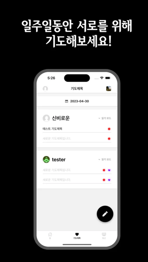 2.1 일요일을 기준으로 매주 서로의 기도제목을 생성및 열람 삭제 할 수 있습니다.