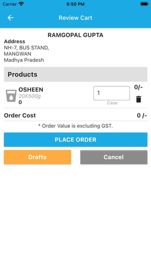 Distributor can do place an order to territory manager, once the order is placed it will go for territory manager approval.