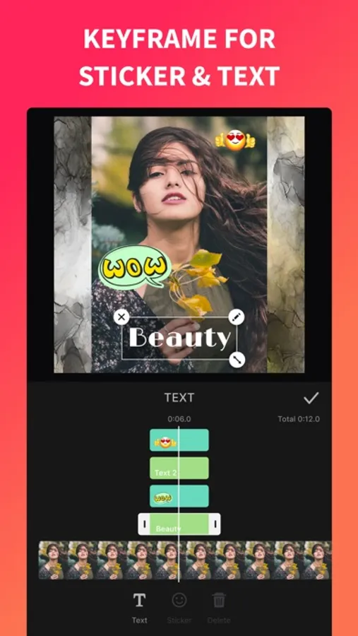• Text & Stickers: Huge collection of stickers are ready to express your mood. Additionally a rich text module to tell your thoughts. You can adjust text and stickers with video timeline with easy UI.