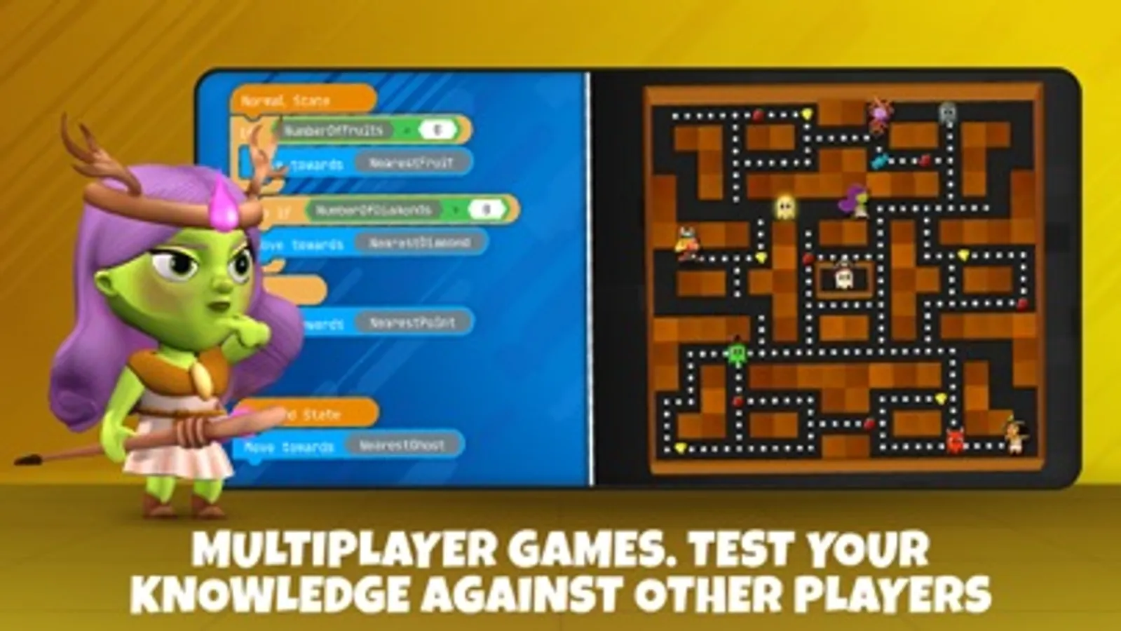 The app also features a variety of multiplayer games and personal challenges to play and learn about coding. Conquer all the challenges and collect all the characters!