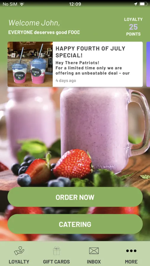 The Crave Nature’s Eatery app is a convenient way to order ahead fresh and healthy food for pickup or delivery. Become part of our growing Loyalty Program where you earn free food, drinks and more!