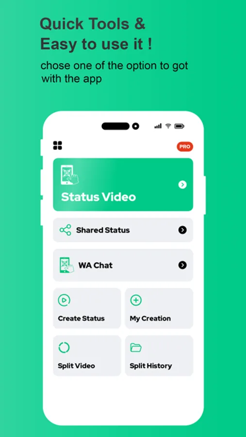 - App has a unique feature that called Video Splitter for WhatsApp Status. Using this feature You can upload any video no matter how long it is and split according to your need. Share splited videos to any social media platform like fb or insta or snapchat etc..