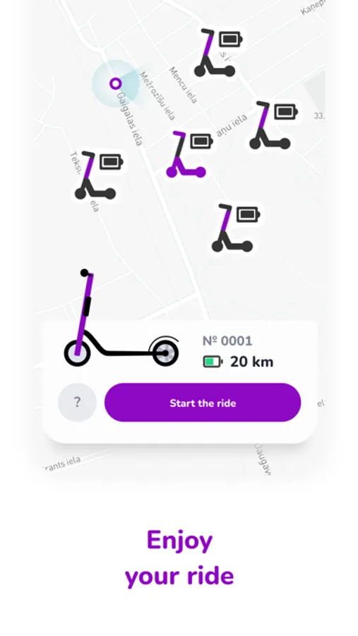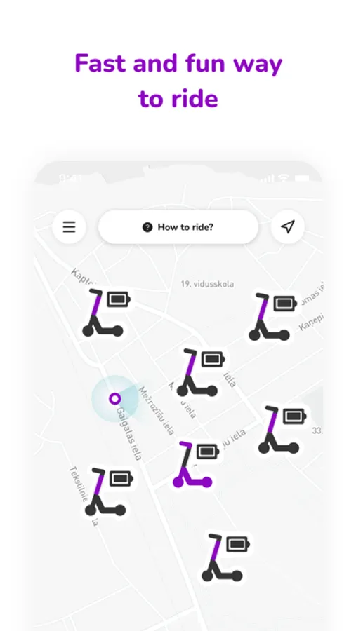 2.Open the app to find the nearest Bodaz scooter using the map feature.