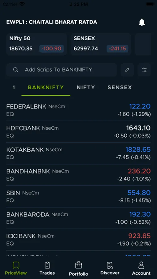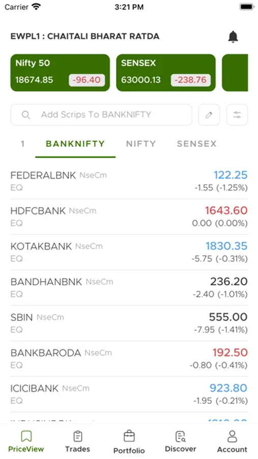 • Add up to 100 scrips per PriceView.