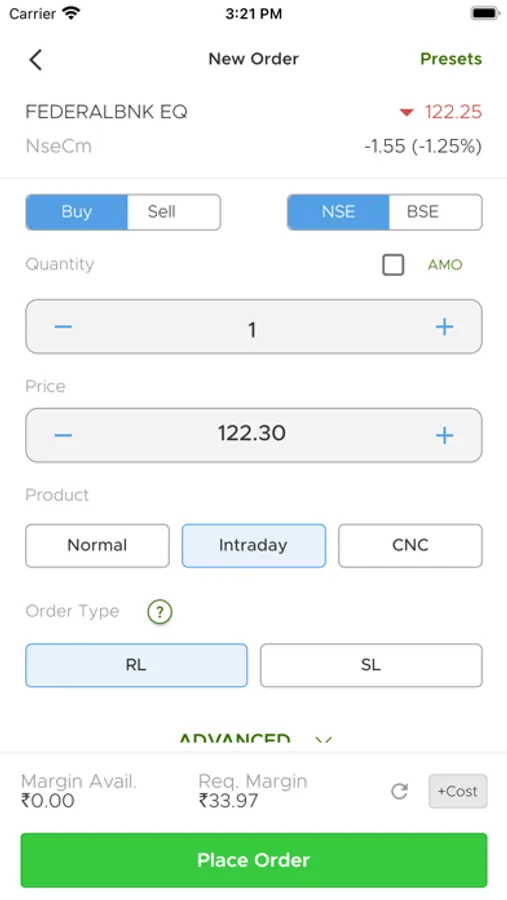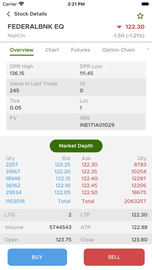• Buy Sell directly from Option Chain.
