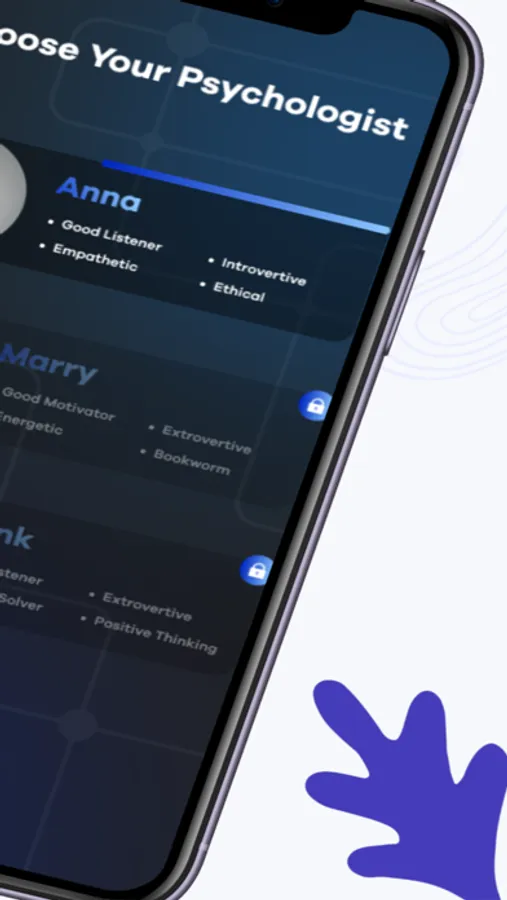 Therapy made simple - Get access to professional therapy with our chatbot psychologists. Our chatbot psychologists are available anytime, anywhere and offer personalized therapy sessions tailored to your needs. With our chatbot psychologists, you can get the help you need, from the comfort of your own phone. Get started today and take control of your mental health.