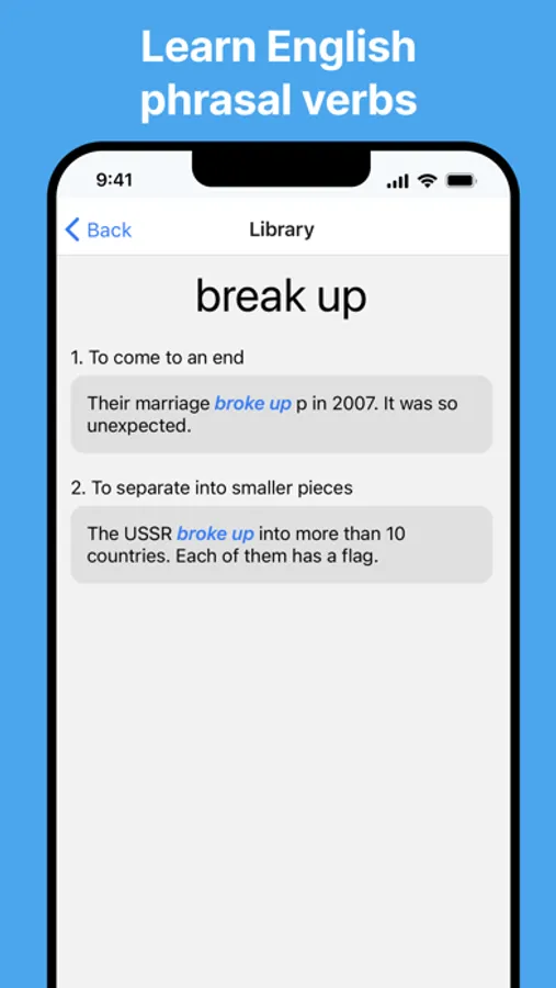 This application is an offline tool to study, practice and learn phrasal verbs in an easy way. With this application, you will understand how to use and memorize phrasal verbs correctly. You will be able to make phrasal verbs that will help you express your thoughts and describe actions very accurately.