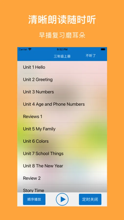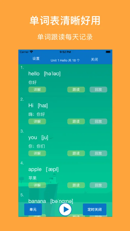 1、跟读模式:循环当页、循环单元、循环课本、区间循环