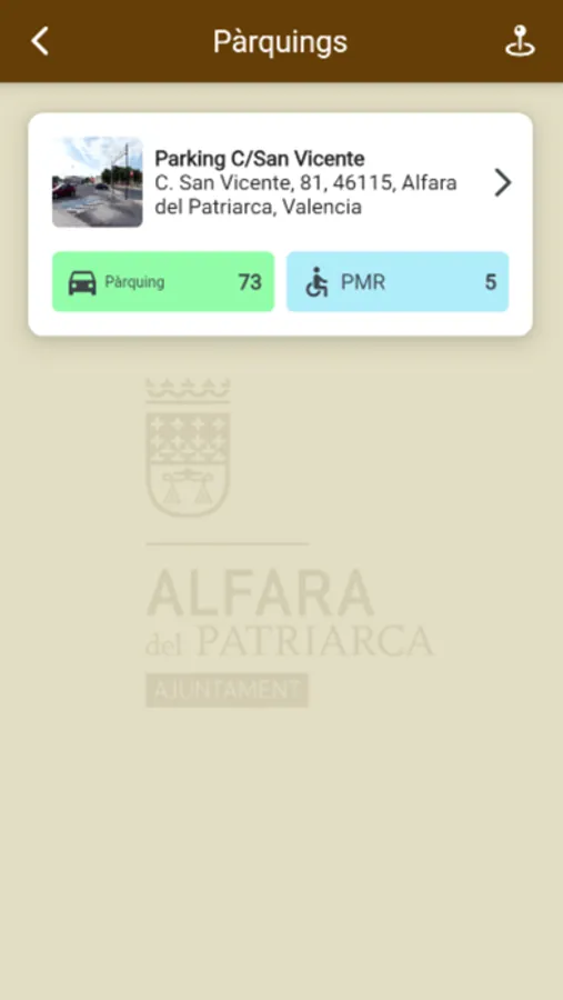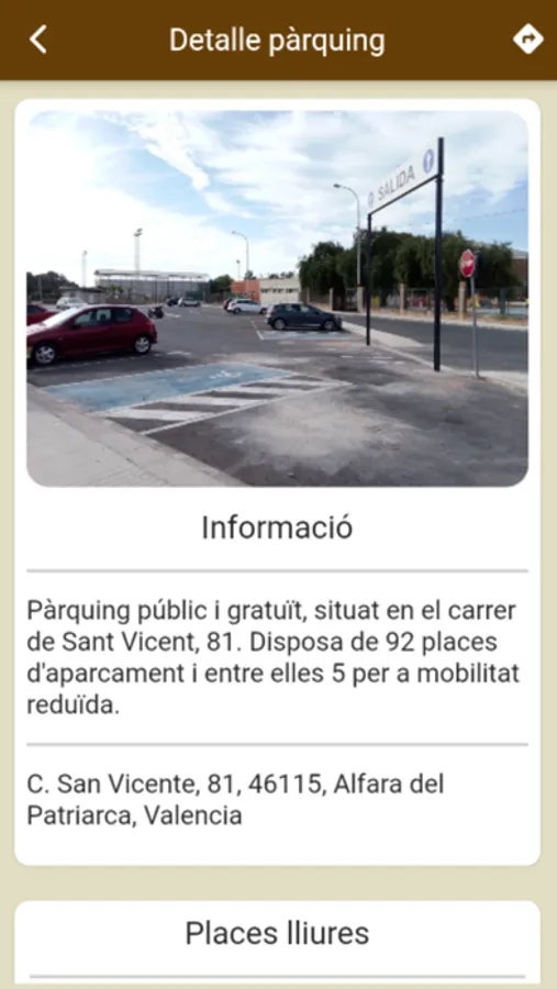 La aplicación Smart Parking de Alfara del Patriarca permitirá a los conductores la identificación de zonas de aparcamiento alternativas. Se busca facilitar a los conductores la localización de plazas de estacionamiento libres, evitando la circulación de vehículos por el centro urbano buscando lugares para estacionar, y con ello reduciendo los problemas de tráfico que genera su lenta circulación o su estacionamiento indebido (aceras, doble fila …). Como consecuencia se generará una reducción de la emisión de los gases contaminantes procedentes de la combustión de los carburantes.