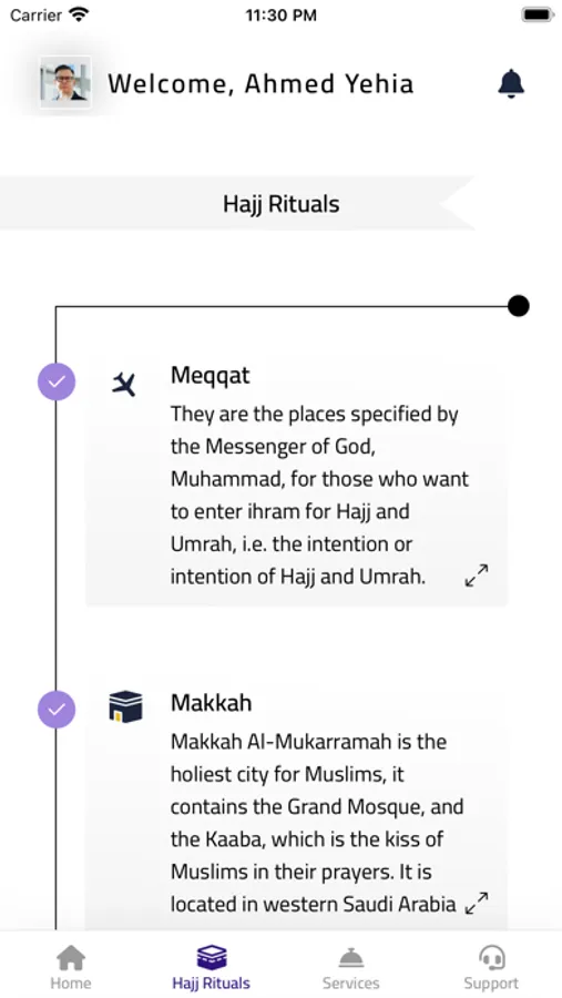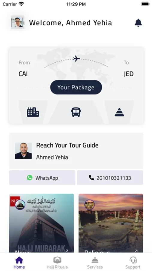 Welcome to the ultimate Hajj companion app! Our app is designed to make the Hajj journey smoother and more enjoyable for pilgrims. With our app, you can easily view your package details, book services, stay up-to-date with the latest Hajj news, and access important Hajj guides and steps. Our support team is also available via chat to assist you with any questions or concerns you may have.