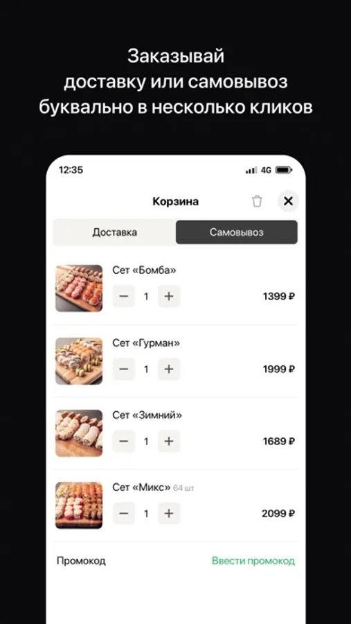 — Сделать заказ быстро и с мгновенным подтверждением через приложение;