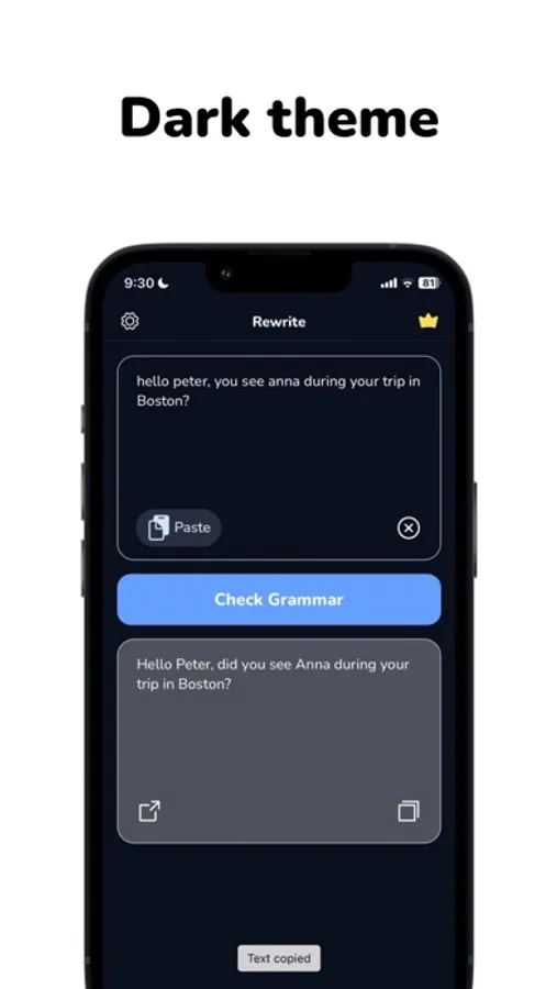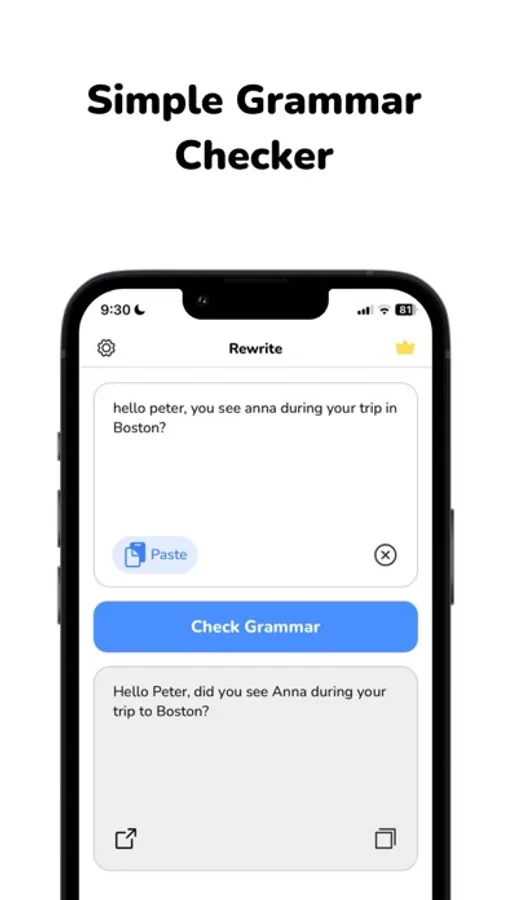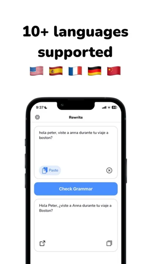 With Rewrite, you don't have to be a native English speaker to write like one. Our app uses AI technology to identify and correct mistakes that other spell-checkers might miss.