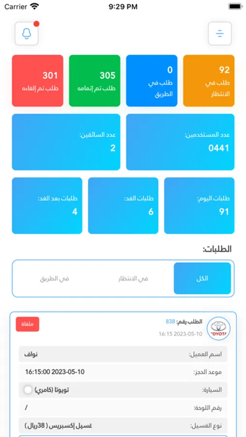 تطبيق الإدارة والسائق لإدارة طلبات الغسيل وتحويلها للسائقين