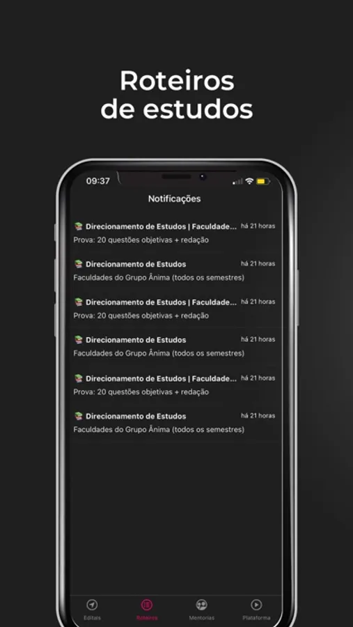 Nesta primeira versão do aplicativo, os alunos do TNM conseguem visualizar todas as notificações de Editais e Provas de Transferência de forma organizada.