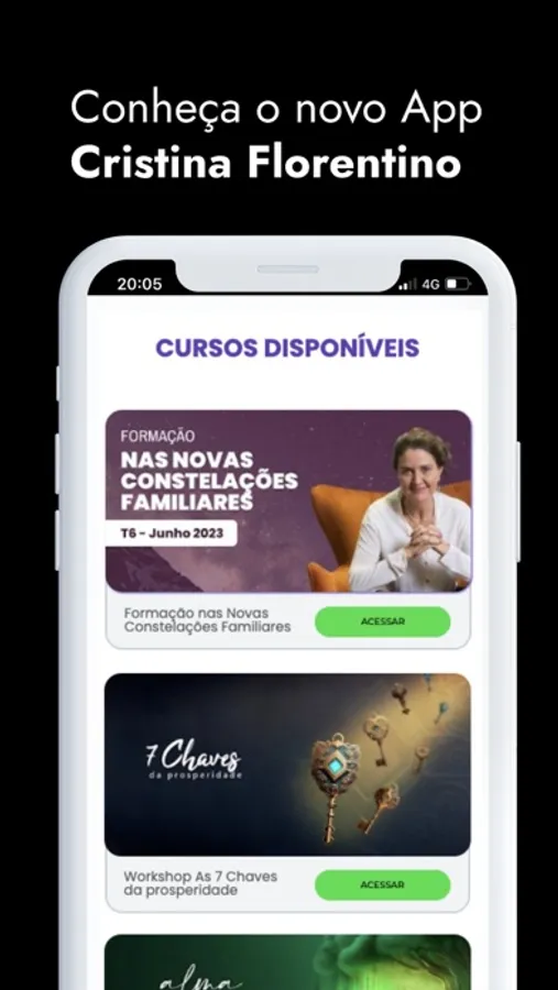 O aplicativo Cristina Florentino além de ser o portal dos alunos da Cris é o local ideal para quem busca explorar o universo das Novas Constelações Familiares de Bert Hellinger. No App você encontra cursos online, treinamentos e informação para ajudar quem deseja adquirir conhecimento, do básico ao avançado, sobre constelação familiar. Baixe agora o aplicativo e comece sua jornada nas Novas Constelações com Cristina Florentino!