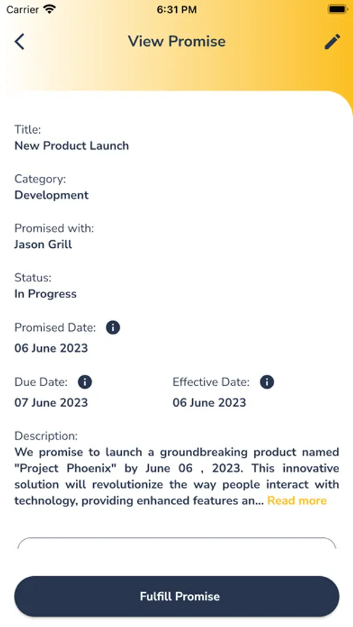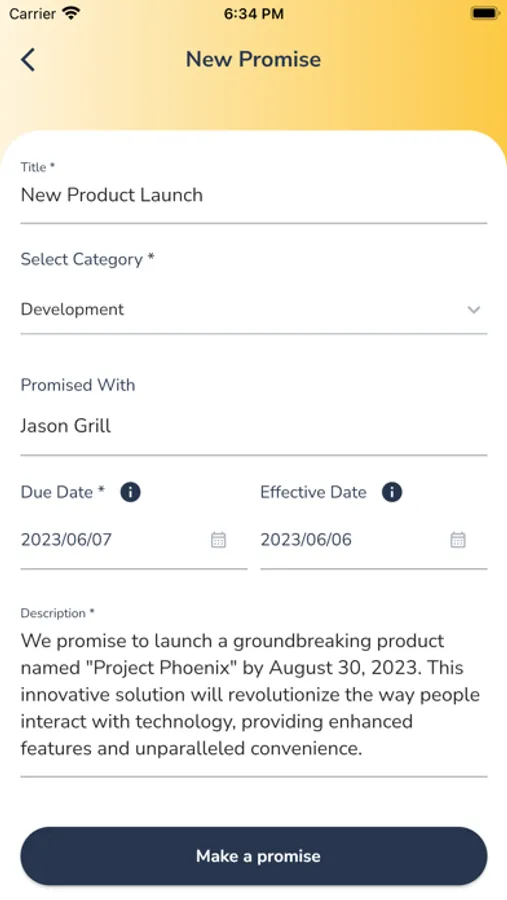 - File/Image Attachments: Enhance your promise details by attaching relevant files or images. Capture supporting documents, images, or any other visual aids that can assist in fulfilling your promises. Having all the necessary information in one place keeps you focused and increases your chances of success.