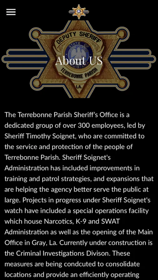 This App is a great public outreach effort developed by the Terrebonne Parish Sheriff's Office to improve communication with our residents.