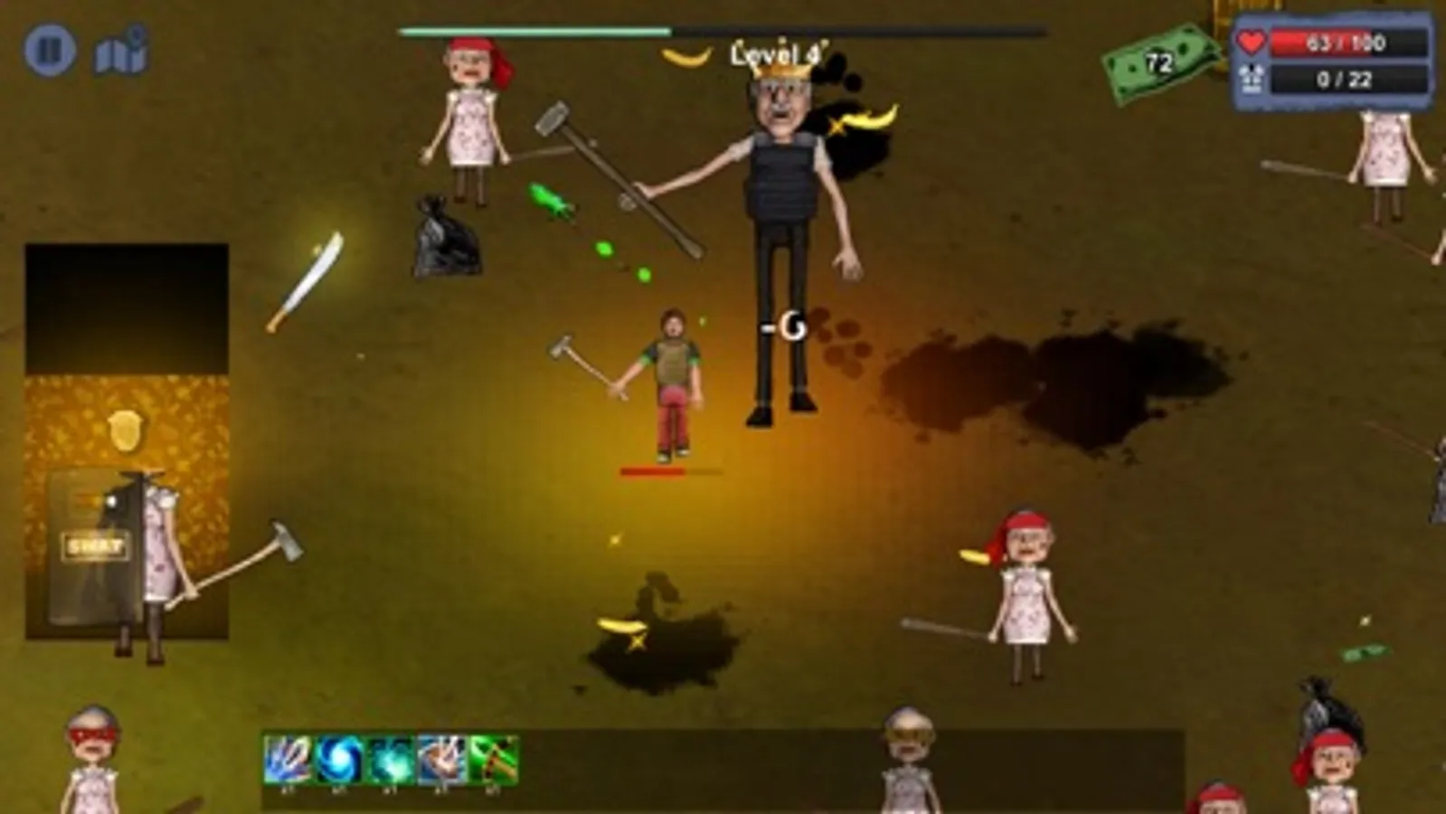 In the Campaign mode, a player is tasked to escape from the house of a granny and grandpa. Each level presents a unique location with its own specifics. For this reason, a player needs to constantly change the direction of the upgrading of their skills. A flexible upgrade of a character makes the gameplay even more exciting.