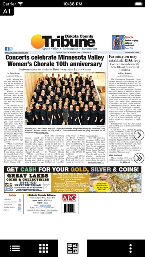 This is a digital replica of the printed Dakota County Tribune. This app is part of your all access subscription. If you have questions about using the app please call Customer Service at (763) 712-3544.