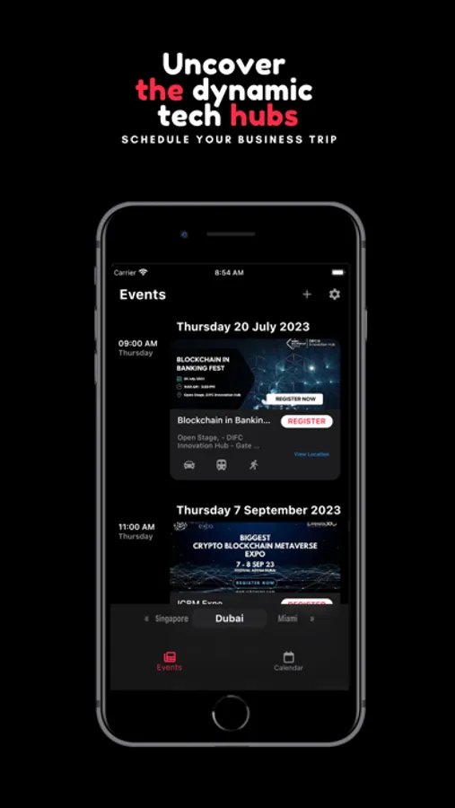 Using the dotmeet Events Calendar, find and schedule the latest and hottest web3 and technology events in happening tech hubs like Dubai, London, Miami, Singapore, and Paris