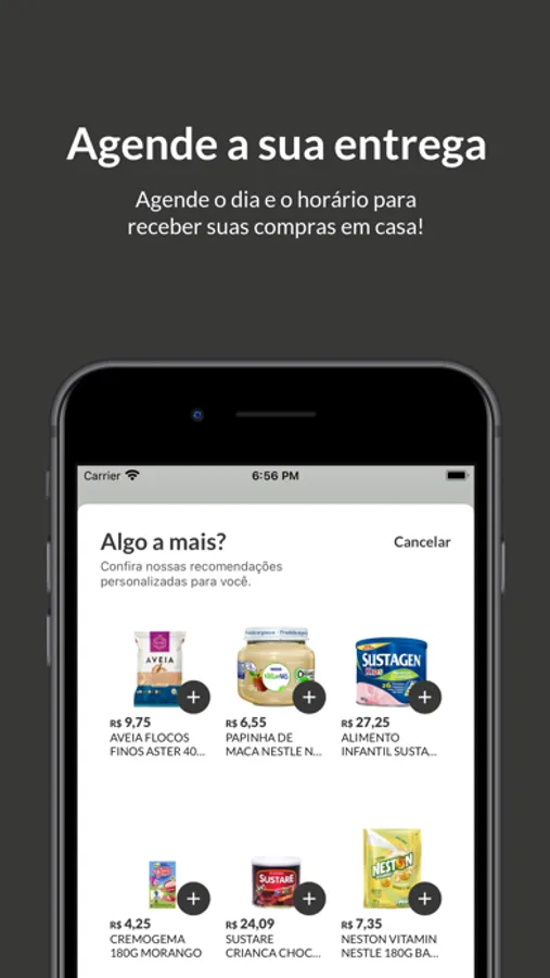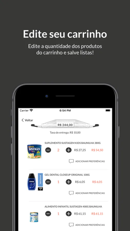 • Adicionar produtos no seu carrinho com um simples tocar e arrastar.