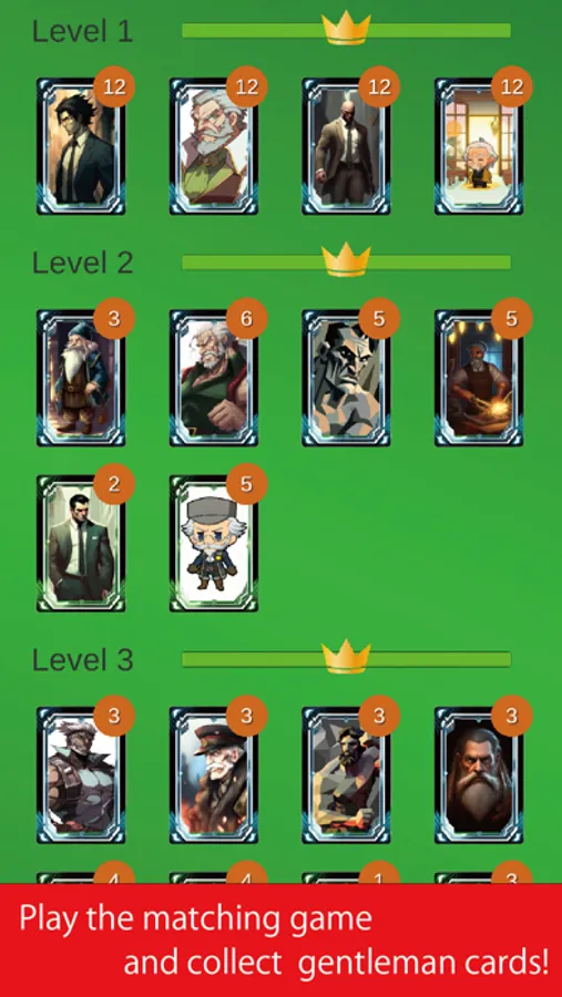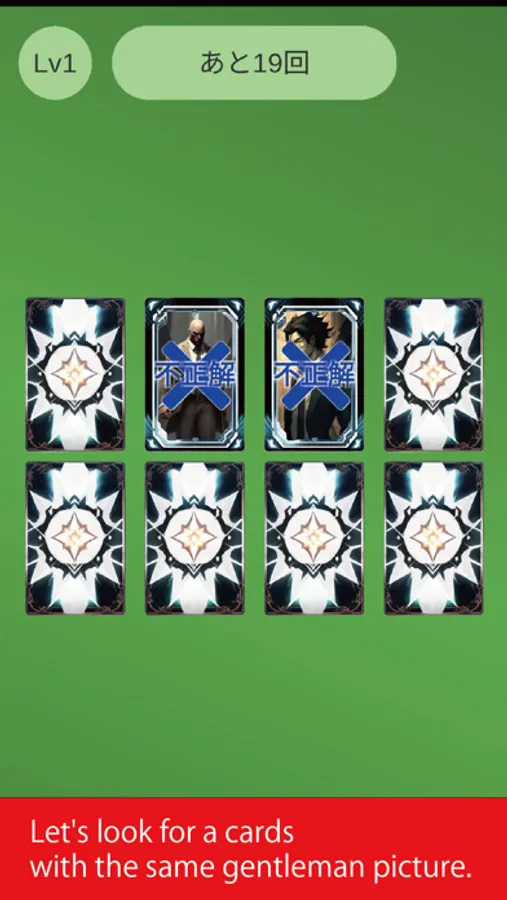 There are 10 stages in total, and as the stages progress, the number of cards increases and the gentlemen become harder to distinguish.