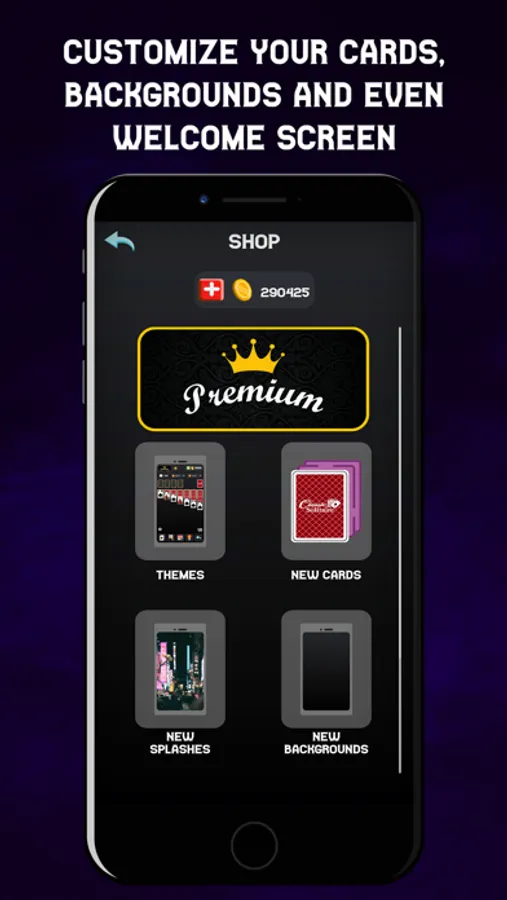 - 4 types of customizable content: Cards, Backgrounds, Color Themes and Splashes (Welcome screen);