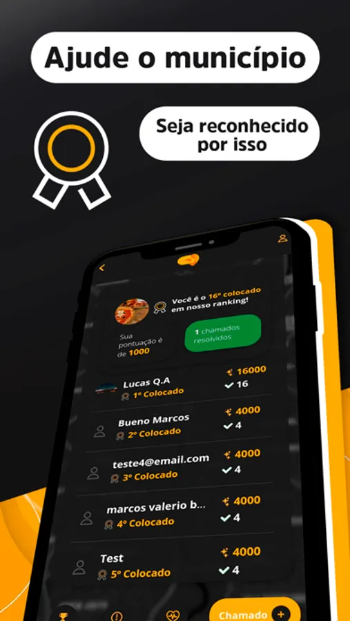 → Acompanhe o status dos seus chamados e acumule pontos para subir no ranking de usuários que mais ajudaram o município.